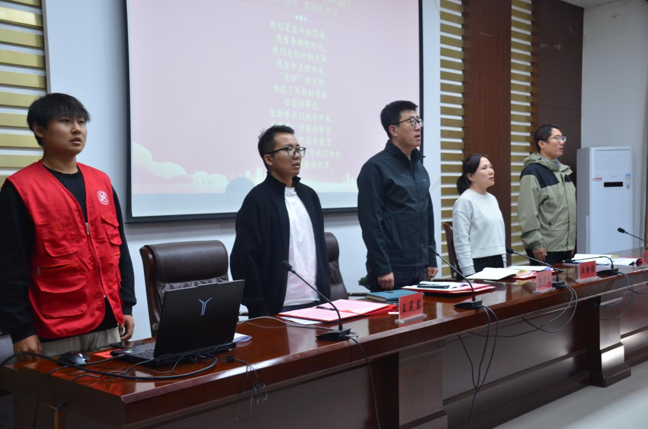 大会第一项:全体起立奏唱中国共产主义青年团团团歌,激昂旋律点燃现场氛围;